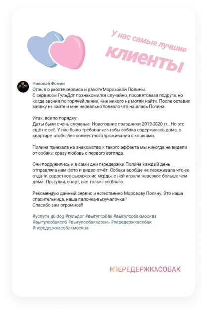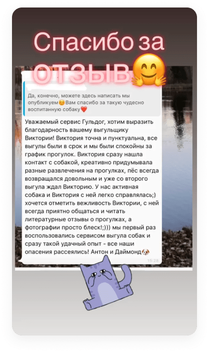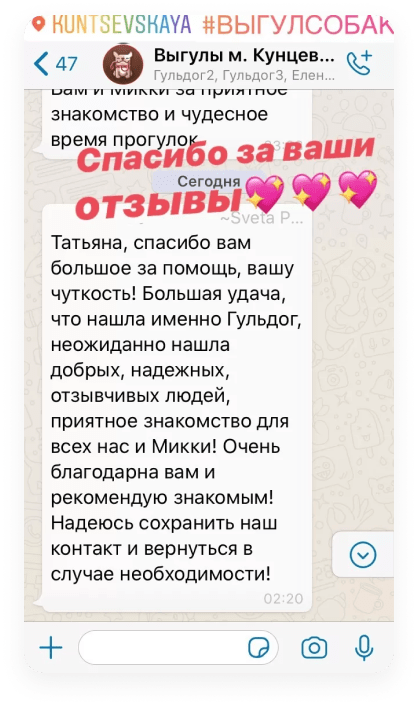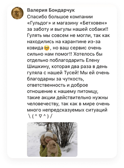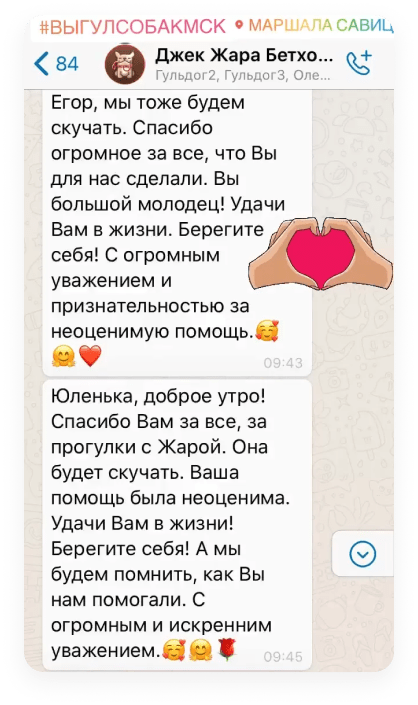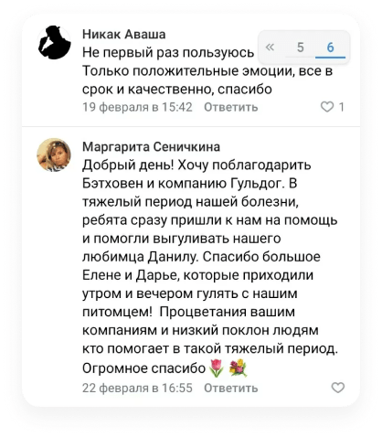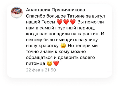 Уход, выгул, передержка животных (в частности собак) от сервиса подразумевает страхование, что гарантирует безопасность каждому работнику.